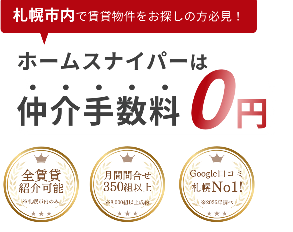 ホームスナイパーではどんな賃貸物件でも、仲介手数料¥0です。