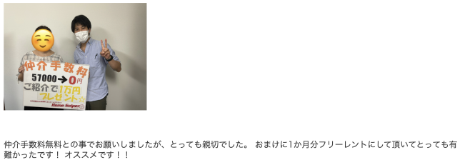 実際にホームスナイパーでも、フリーレント物件を契約して1ヵ月分家賃が無料となり、満足されたお客様がいますよ。